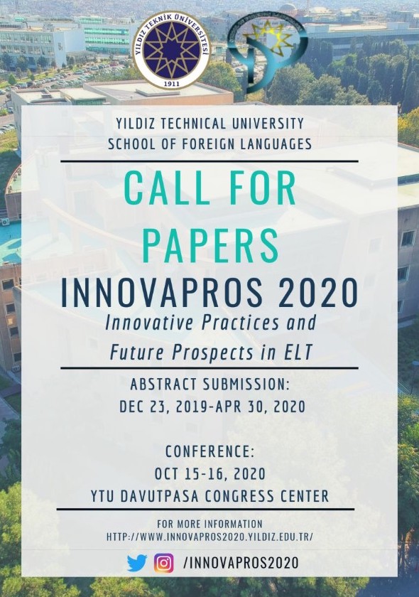 INNOVAPROS 2020 International Conference will take place in Davutpaşa Congress Center between October 15-16, 2020. We would like to see all ELT community in this conference to share ideas and contribute to the field.